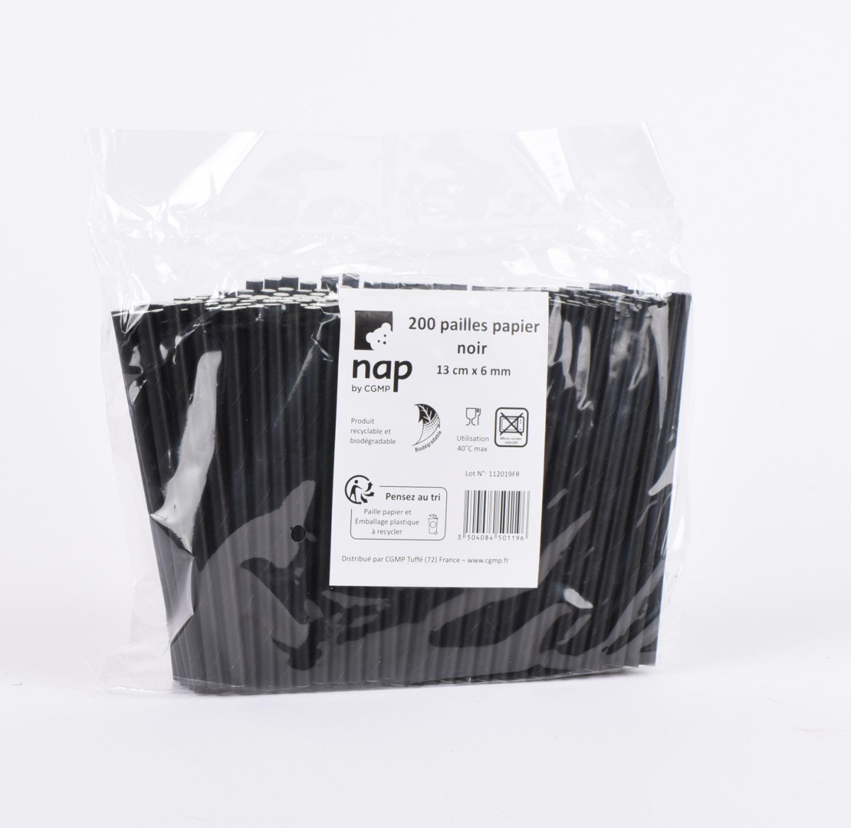 200 Pailles Papier de 13cmx6mm Noir